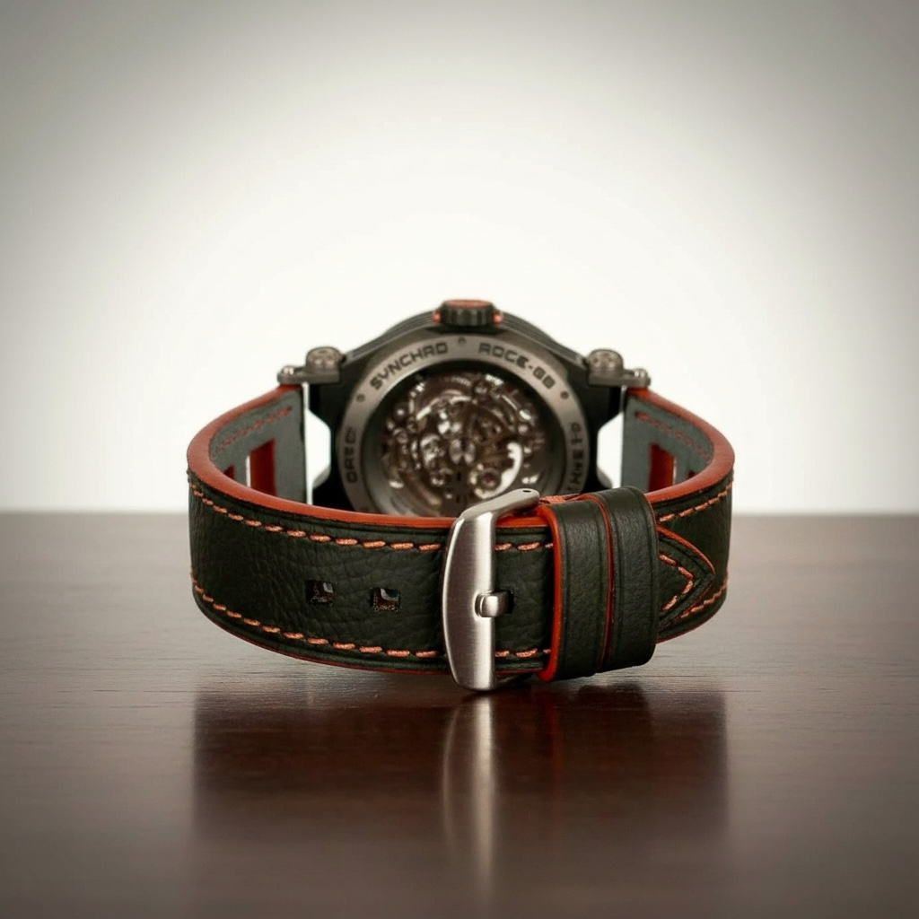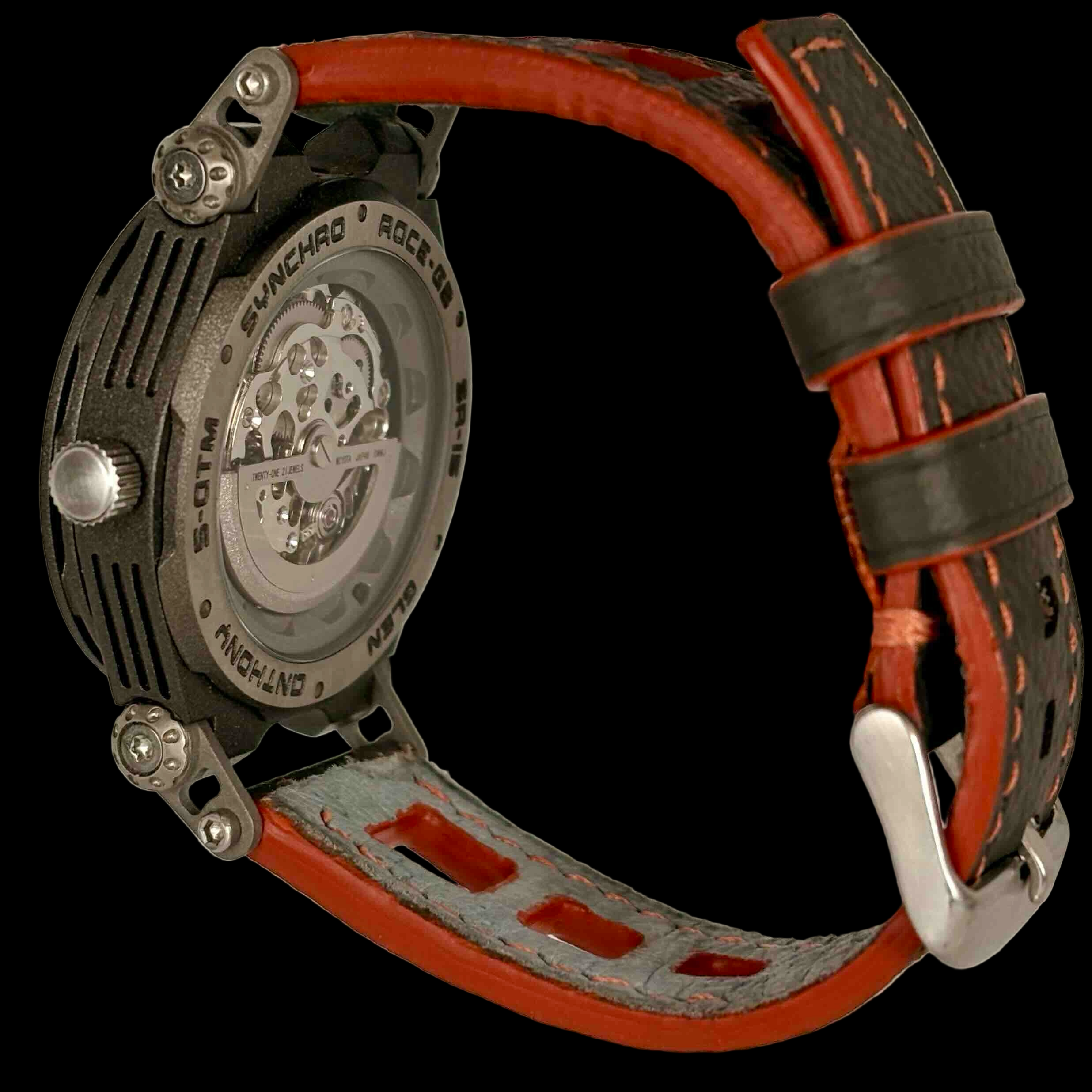 The Synchro R is a slightly smaller version of the Synchro 2, with a 42mm case all titanium very light and comfortable, I have redesigned the strap connectors for a engineered finish.