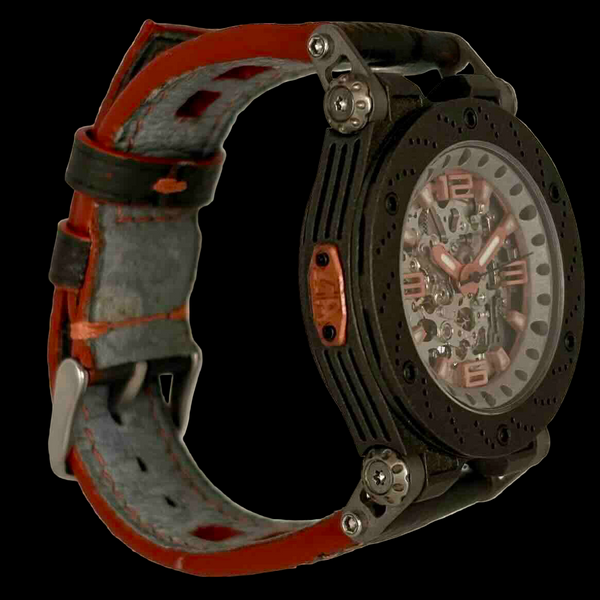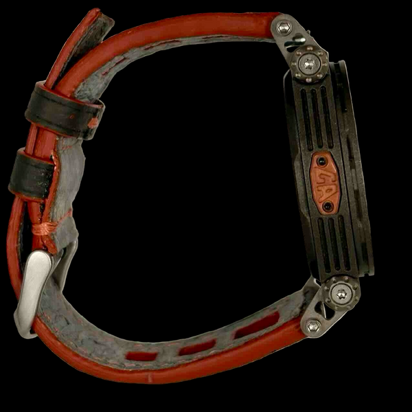 All titanium ceramic coated case with copper detailing  Unique titanium bolted brake disc bezel  Sapphire Crystal glazing  42mm case  Precise miyota automatic movement  Titanium and copper dial  Strap is...